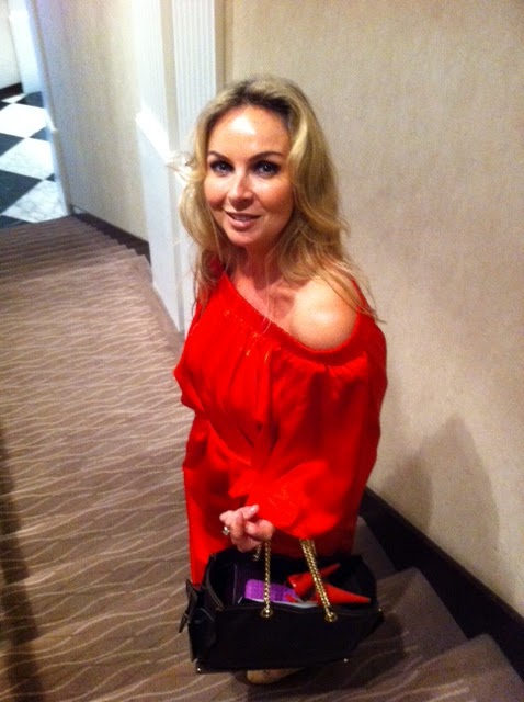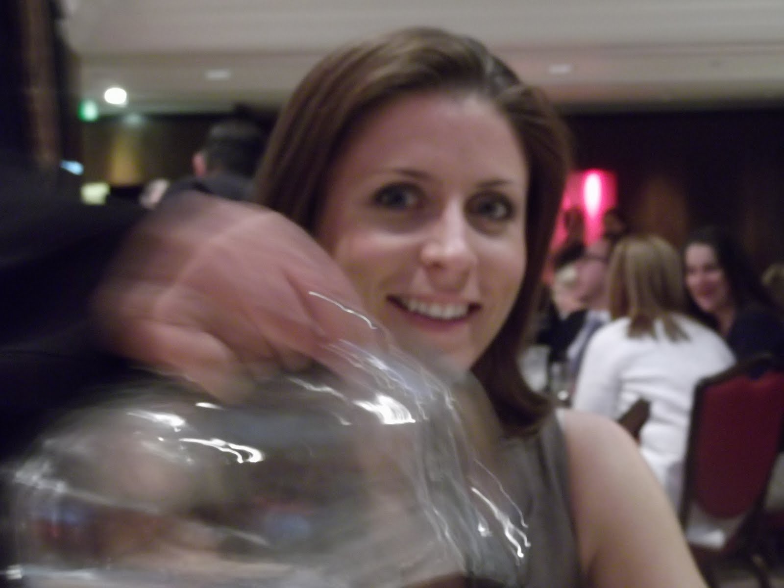 What WOULD have been a gorgeous picture of Liz, Brand Manager of All for Eve had it not been for the keen water waiter. |