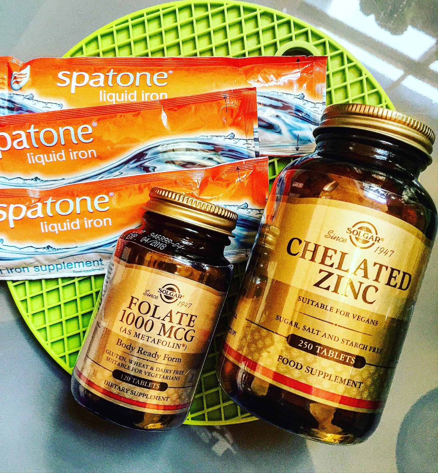 My current lifeline supplement-wise. Folate and Zinc from Solgar and Spatone to boost my iron levels. I'm a long-term anaemic and thus far, this is working better than Floradix and prescription folic acid. Thank you to those of you that recommended the changes.