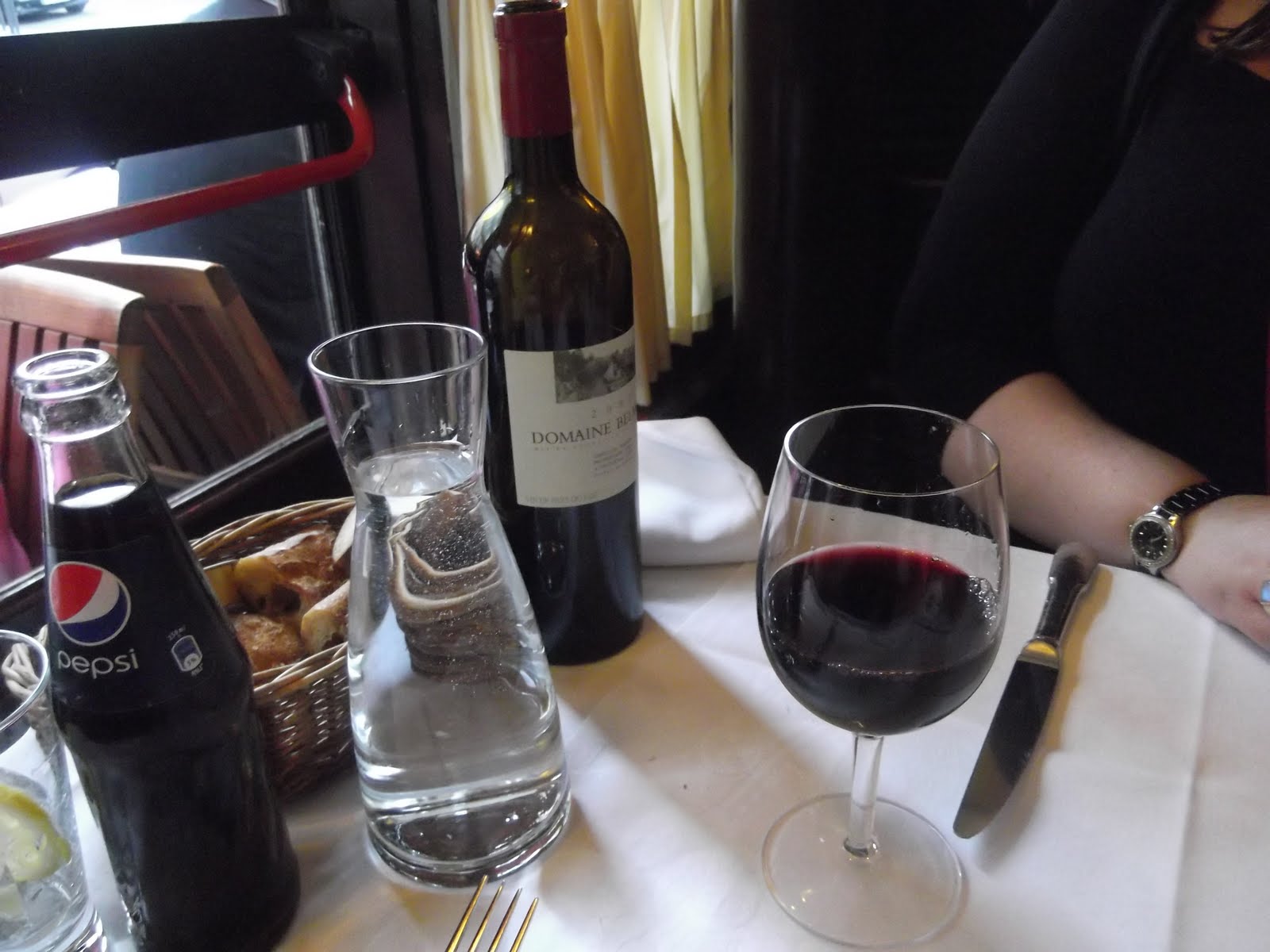 Seeing a pattern here?? Dinner. Bread, water, wine and Pepsi - for the energy doncha know.. |
