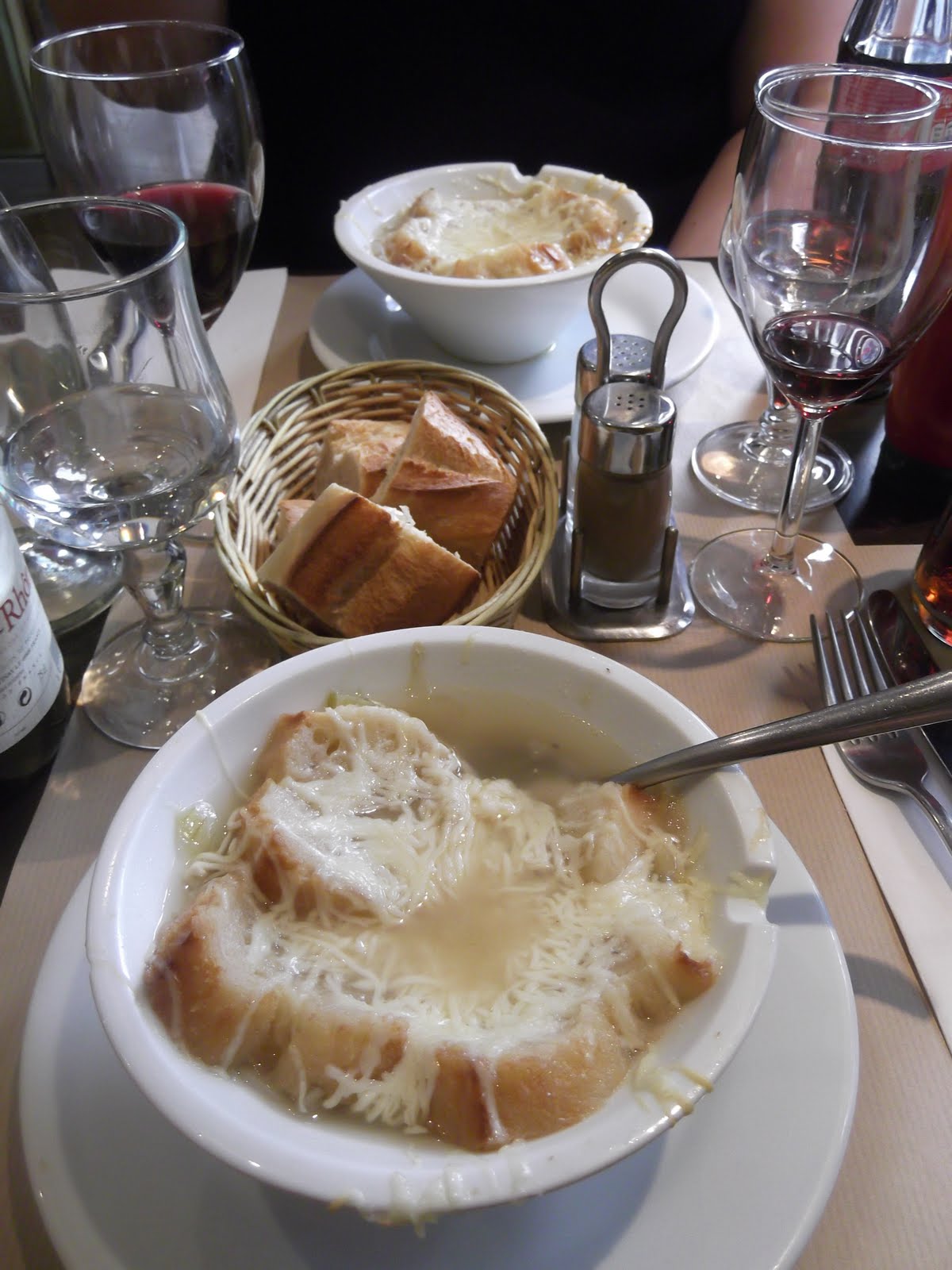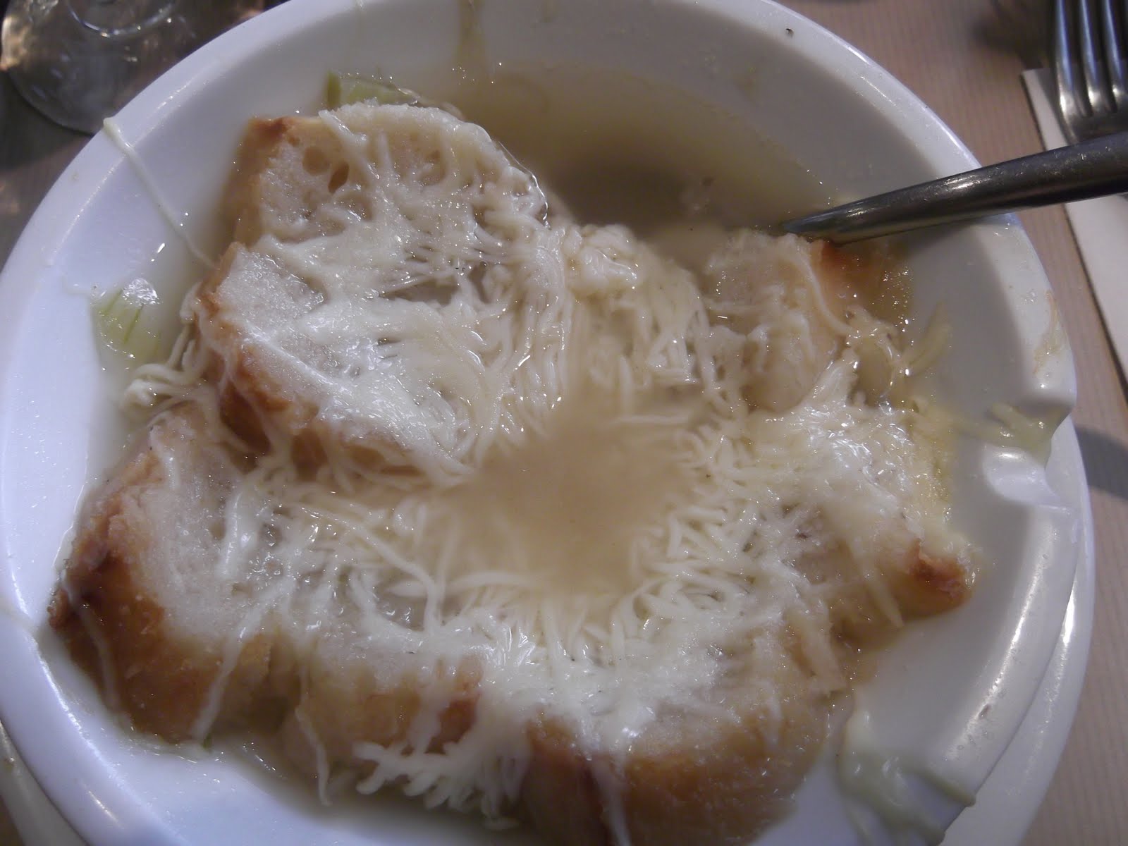 Would you like any onion soup with your melted cheese Madame? |