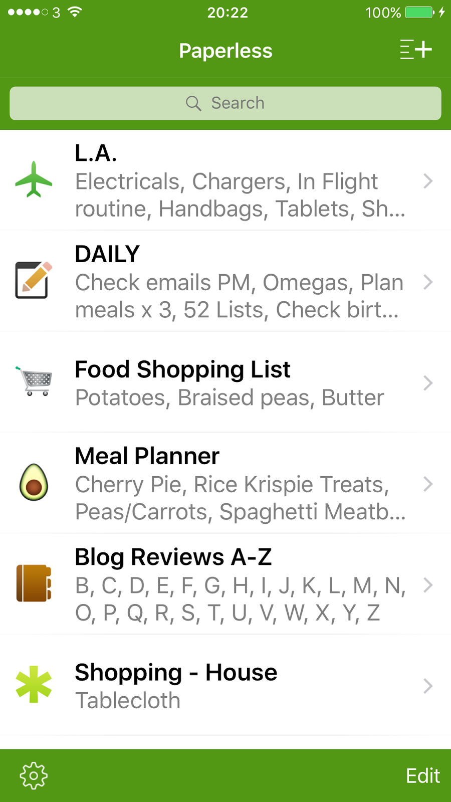 The obvious bonus of this is that you are utilising something that you (probably) have close to you at all times. No more carrying heavy notebooks, no more flicking to the correct pages etc... You open the app, find your list and add/untick/tick accordingly.